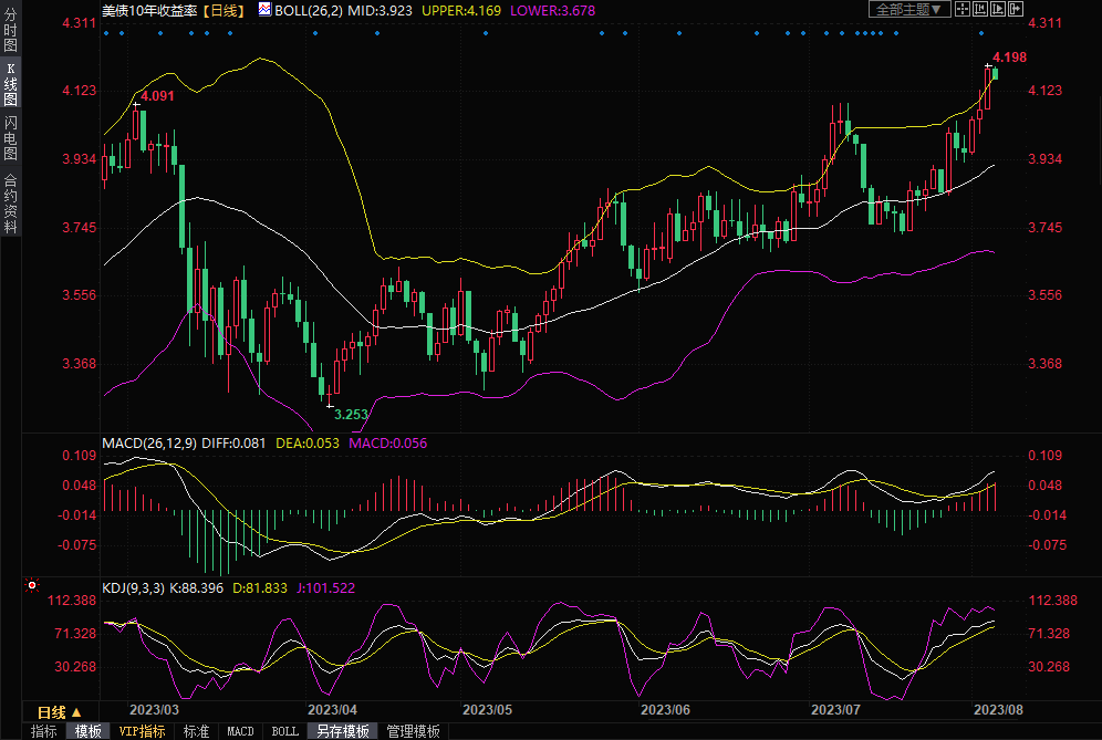 周四收益率走高也反映出市场越来越看好高利率下经济的韧性。近期数据令投资者感到放心,但它们并不是帮助判断美联储未来会暂停加息还是会再次行动的明确指标。美联储在7月加息25个基点。