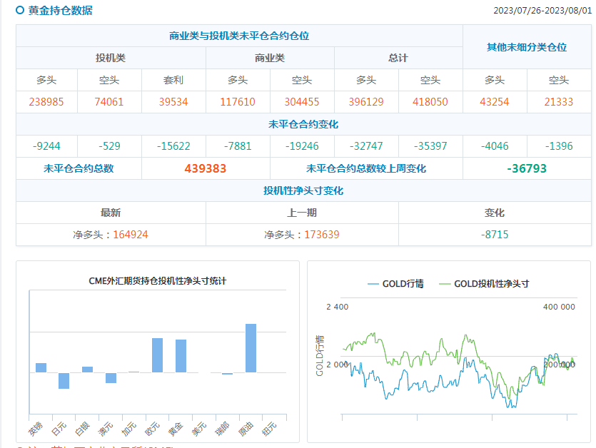 汇通财经APP讯——汇通财经据CFTC官网持仓数据:截至8月1日当周,COMEX黄金期货投机性净多头头寸减少16954手至99337手;美原油期货投机性净多头头寸增加2854手至180595手。