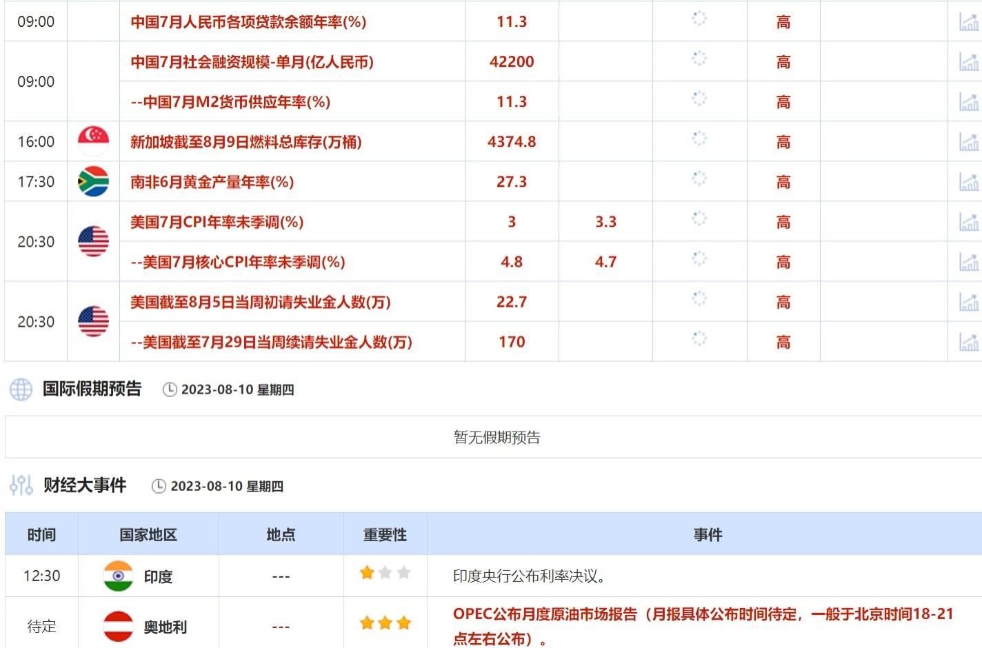 ④8月10日(周四)关键字:美国7月CPI,美国截至8月5日当周初请失业金人数