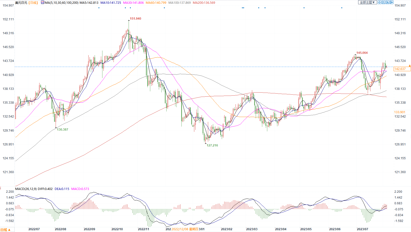 美元兑日元日图走势