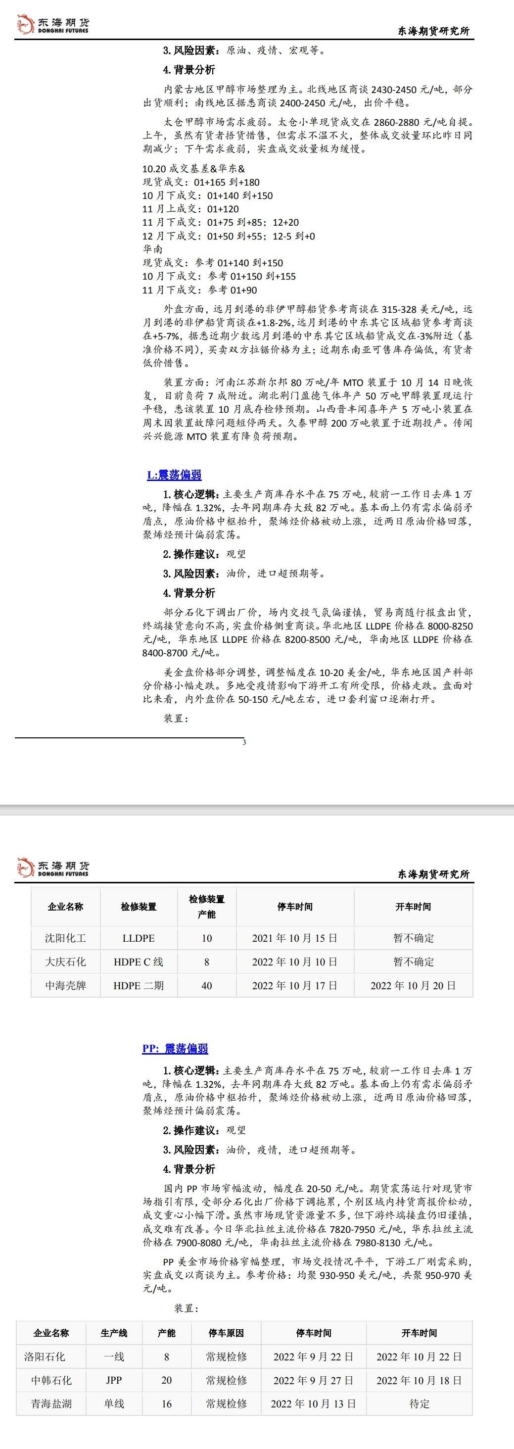 【东海期货10月21日产业链日报】能化篇:油价回吐涨幅,股市下跌带动继续疲软