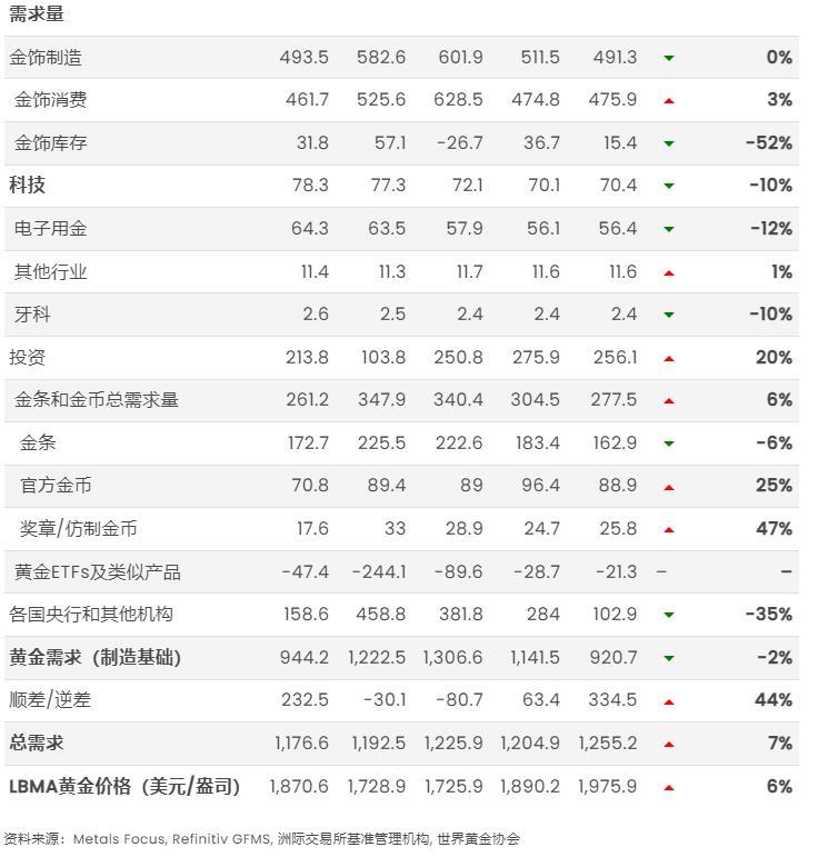 科技用金需求依然疲软,主要由于消费电子产品的需求不振。科技用金需求已连续第二个季度保持在70吨的水平。