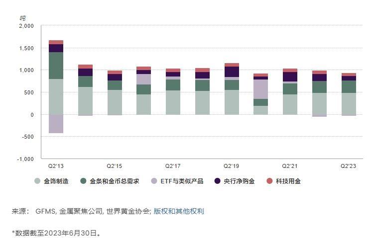 图:二季度坚挺的金饰和投资需求弥补了略微放缓的央行购金需求