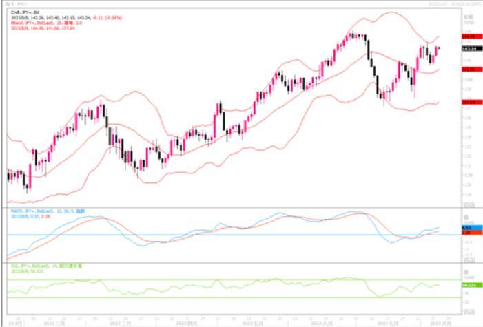 周二数据显示,由于物价持续上涨,日本6月实质薪资连续第15个月下降,但名义工资增长依然强劲,高收入工人的工资不断上涨,而且劳动力短缺的范围不断扩大。尽管如此,美国基本面优于世界其他地区,且息口仍存在继续上调的空间,这使得美元得以对日元保持着优势。现在所有目光都集中在周四的美国通胀数据上,市场预计美国7月核心消费者物价将同比上涨4.8%。如果通胀率保持高位,将会提升9月继续加息的概率。利率差的继续扩大必然刺激美元/日元的继续上行。日线图上,美元/日元完好维持在近期形成的上升通道中,技术指标配合性地上摆,显示美元多头在伺机推高美元/日元的价位。上行初步目标仍是年内高点145附近。