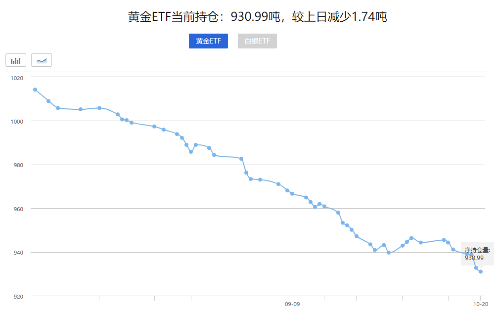 【黄金ETF持仓六连跌】数据显示,全球最大的黄金ETF——SPDR持仓周四减少1.74吨,至930.99吨,刷新了2020年3月以来新低,而且是连续六个交易日下降,说明机构和专业投资者仍在看空黄金后市,并抛售黄金,金价后市面临进一步下行风险。