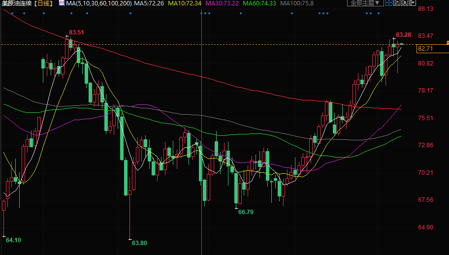 美原油现报82.73美元/桶。
