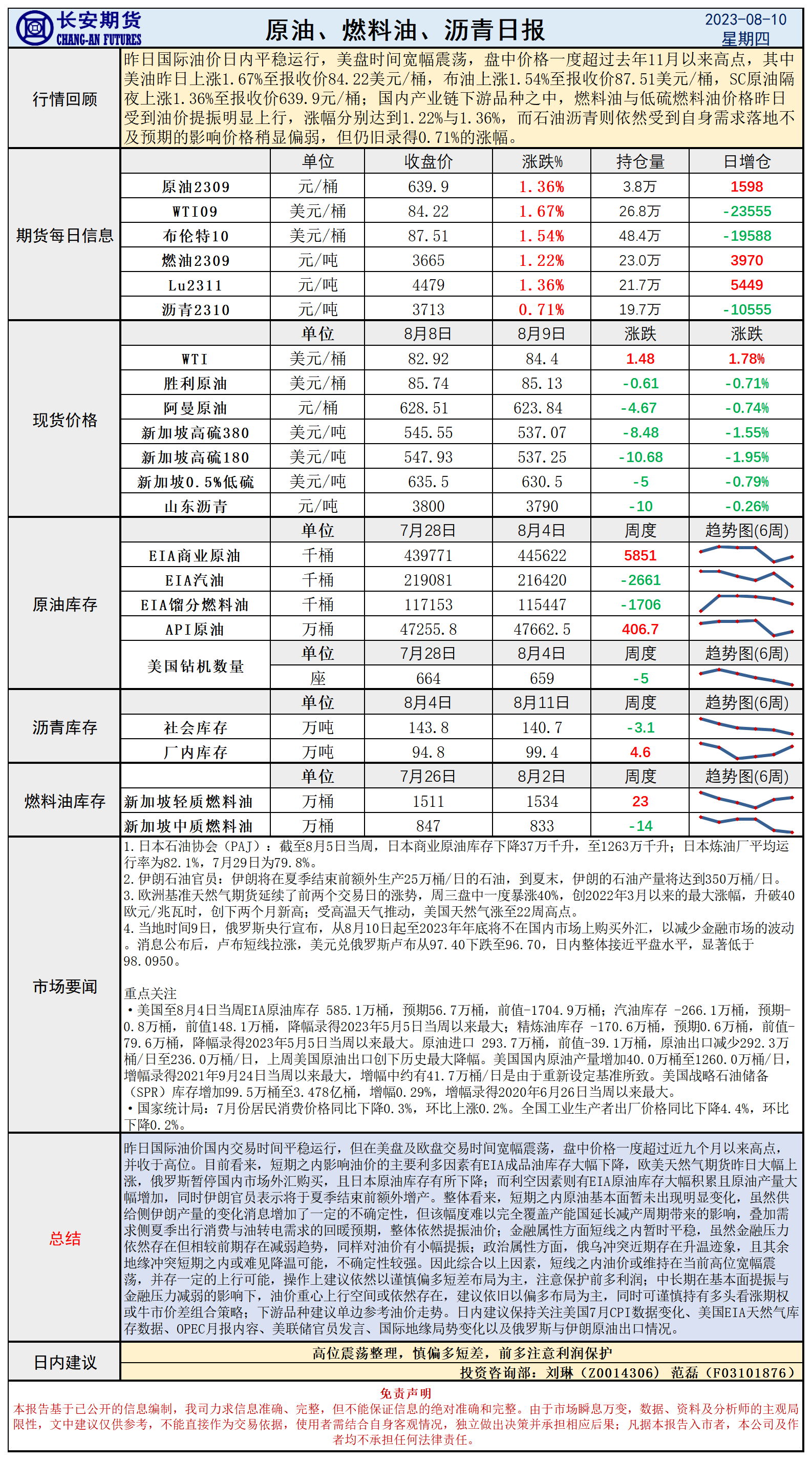 标题:长安期货8月10日原油早评:油价高位再做突破,日内关注美国CPI与OPEC月报