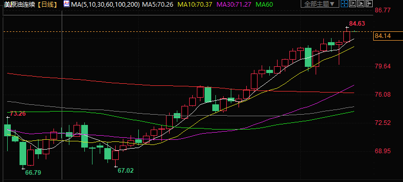 美原油交投于84.15美元/桶附近;美油周三创下近4个月新高,