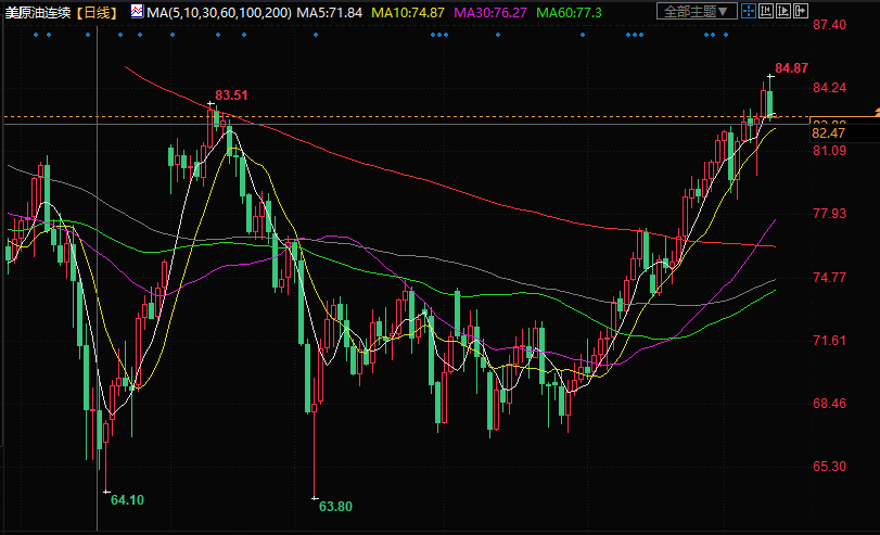 美原油交投于82.87美元/桶附近;油价周四回落近2%,盘中一度触及九个月新高至84.87美元/桶,因OPEC对石油需求前景保持乐观,且美国通胀数据减弱了有关美国再次加息预测,但对亚洲需求的担忧,限制了油价涨幅。