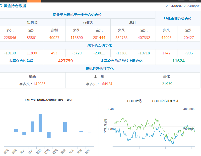 汇通财经APP讯——汇通财经据CFTC官网持仓数据:截至8月8日当周,COMEX黄金期货投机性净多头头寸减少23755手至75582手;美原油期货投机性净多头头寸减少1905手至178688手。