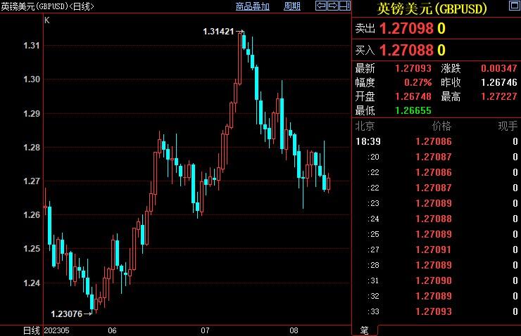 英镑兑美元下跌0.3%至1.2711,连续第四周走低。英镑投资者仍关注英国央行的短期利率路径。市场定价目前显示,英国央行在9月21日的下次会议上继续加息25个基点的可能性约为60%,维持利率不变的可能性约为40%。