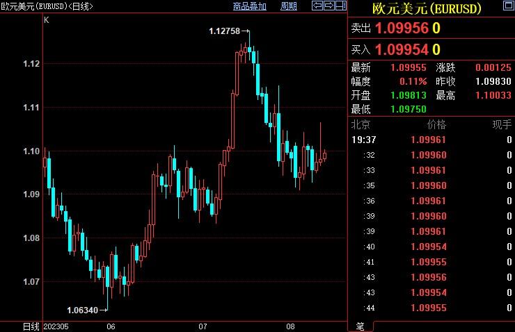 欧元兑美元下跌0.15%至1.0994。投资者仍预计欧洲央行面临理事会内部关于夏季过后是否继续采取紧缩措施的分歧。欧元区经济前景不如美国,欧元很难重现强势。