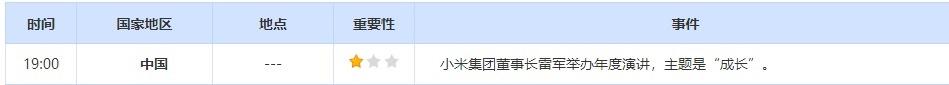 周一重点数据和大事
