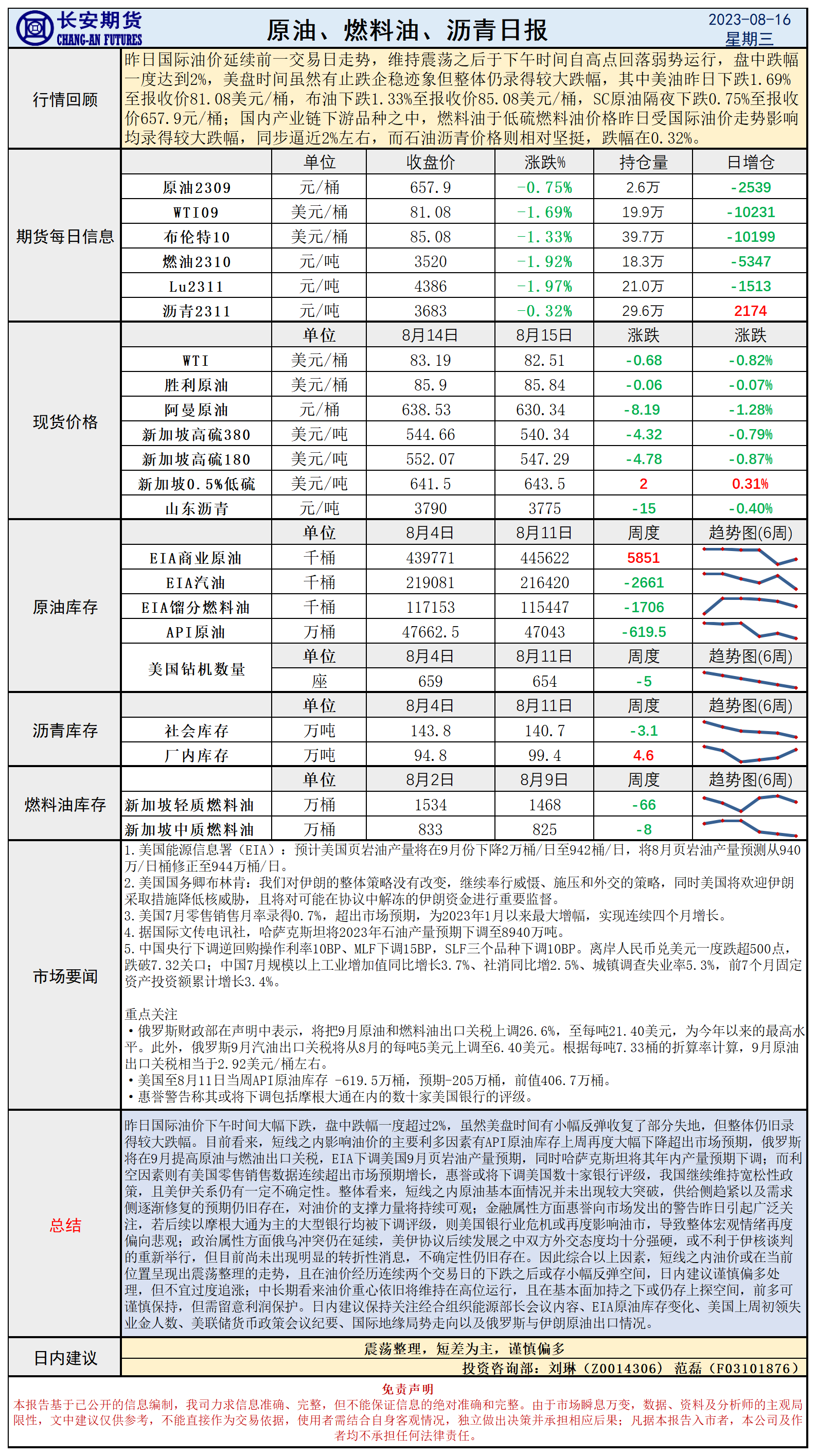 标题:长安期货8月16日原油早评:需求难以验证宏观情绪悲观,油价大幅下跌后或维持震荡整理