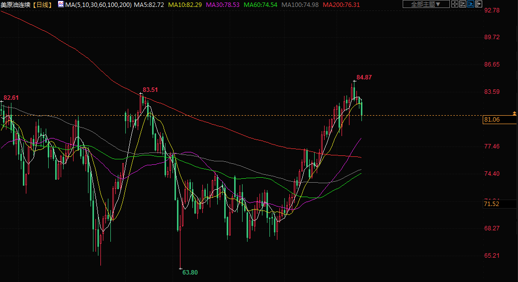 布伦特原油期货下跌1.5%,报收于每桶84.89美元;美国原油下跌1.8%,报收于每桶80.99美元。