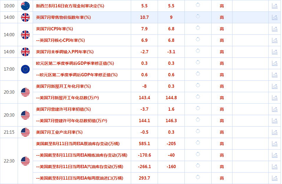 美元指数持平,此前数据显示美国7月零售销售增幅高于预期;美国商务部称,7月美国零售销售环比增长0.7%,表明尽管美联储为抑制通胀激进加息,但需求仍保持了韧性,这主要得益于劳动力市场紧张推动薪资强劲上涨。