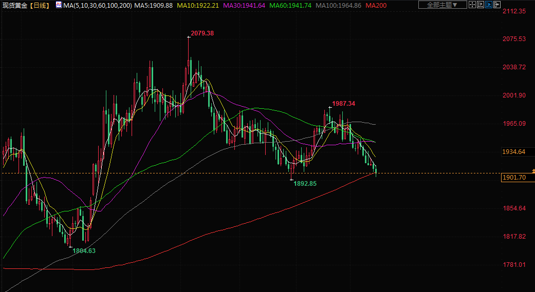 美国商务部周二表示,美国7月零售销售增长0.7%,这表明美国经济在第三季度初继续扩张。OANDA美洲高级市场分析师Edward Moya说,“又是一份令人印象深刻的零售销售报告,这表明经济并未疲软,这将迫使美联储继续保留进一步加息的前景,每盎司1,900美元是许多交易员关注的黄金关键价位。”他补充说:“有时,黄金交易会极具技术性,我们可以看到金价在这一水平附近有一些关键支撑。”