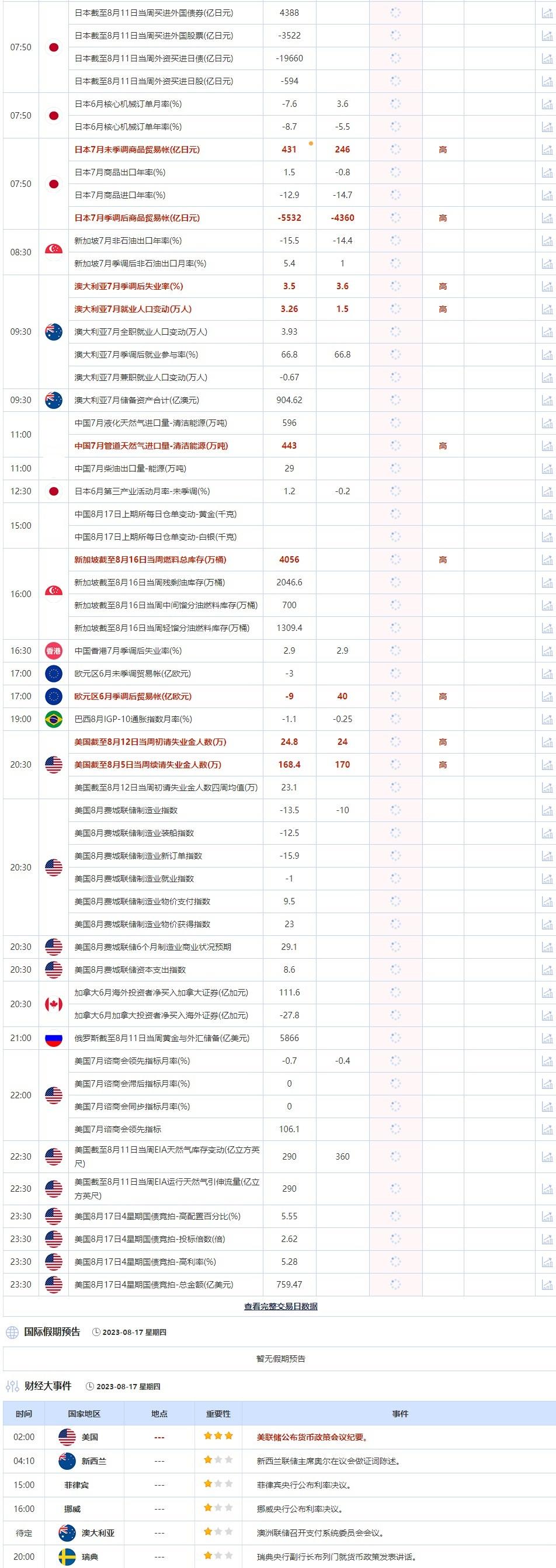 标题:8月17日重点数据和大事件前瞻