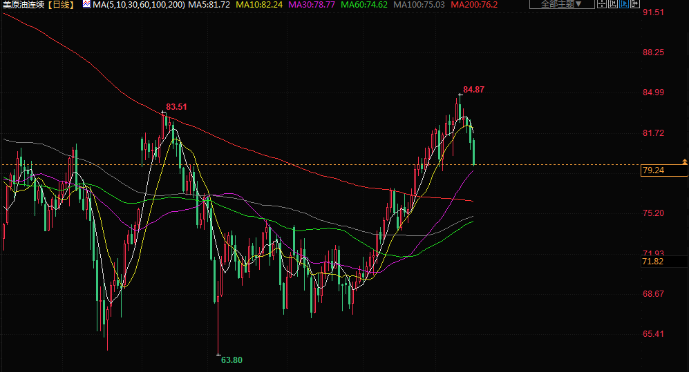 布伦特原油期货下跌1.7%,结算价报每桶83.45美元;美国原油期货下跌2%,报每桶79.38美元。
