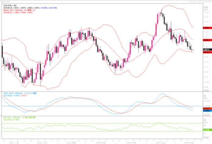 欧元兑美元则仍然下跌0.06%,报收于1.0873,盘中最低一度至1.0856。此前美联储会议记录为进一步加息敞开了大门,而且本周已公布过的不少数据显示美国经济具有韧性,令美元保持强势。而反观欧洲,由于自身能源危机和债务以及粮食等等方面都尚存危机限制着经济的复苏速度,进而也开始降低了欧央行进一步加息的押注,导致欧元近期也是接连的下跌。目前,在日线图上,欧元/美元已跌破前期的强技术支撑水平1.09,技术指标继续下摆之中,显示近期的跌势开始明显起来。隔夜K图收出十字星形态,短线需观察近期交易日内汇价能否收盘在1.09之上,若成功收盘在上述水平之上,则短线有望舒缓下跌势头,并有可能进行一定的修正,但预料上方1.10水平附近的阻力较大,不易穿越。下方则要留意6月份到过的低位1.0835附近的支撑,若跌破,下行空间将为之进一步打开。