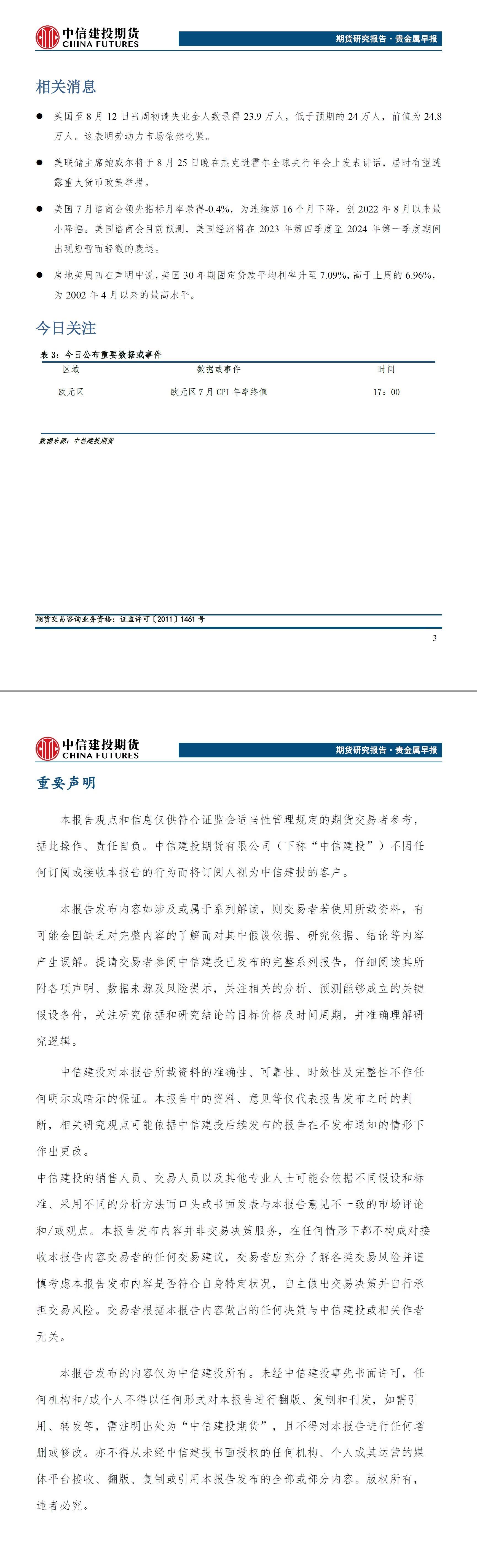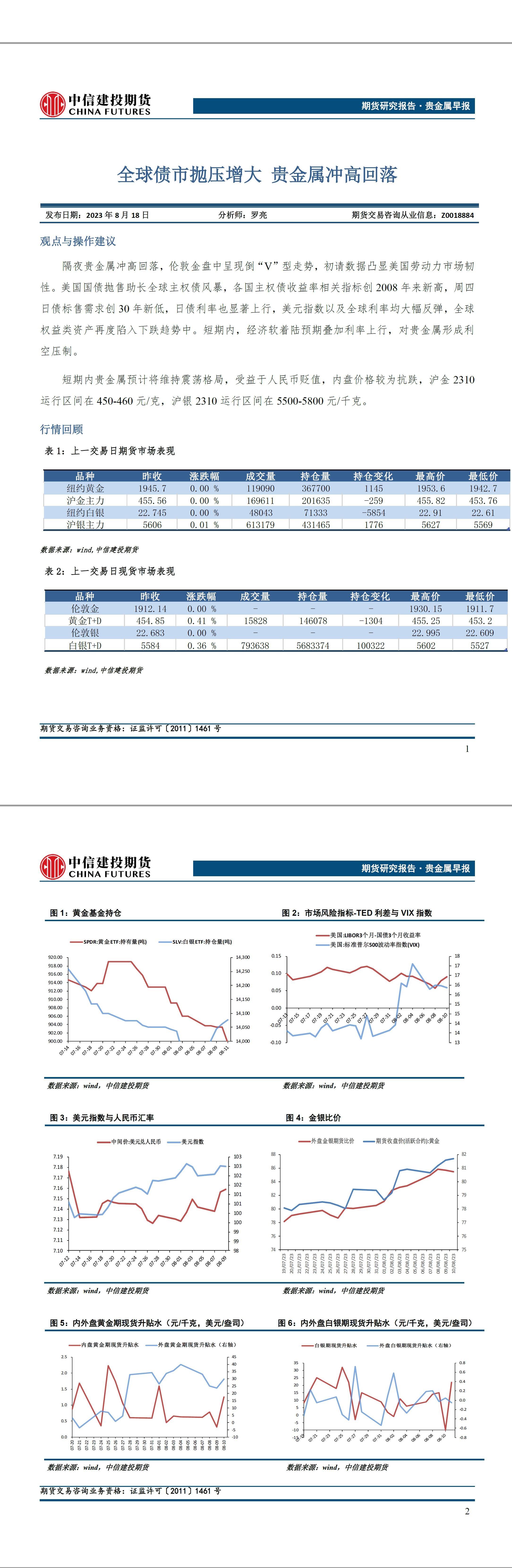 标题:中信建投期货8月18日贵金属早报:全球债市抛压增大,贵金属冲高回落