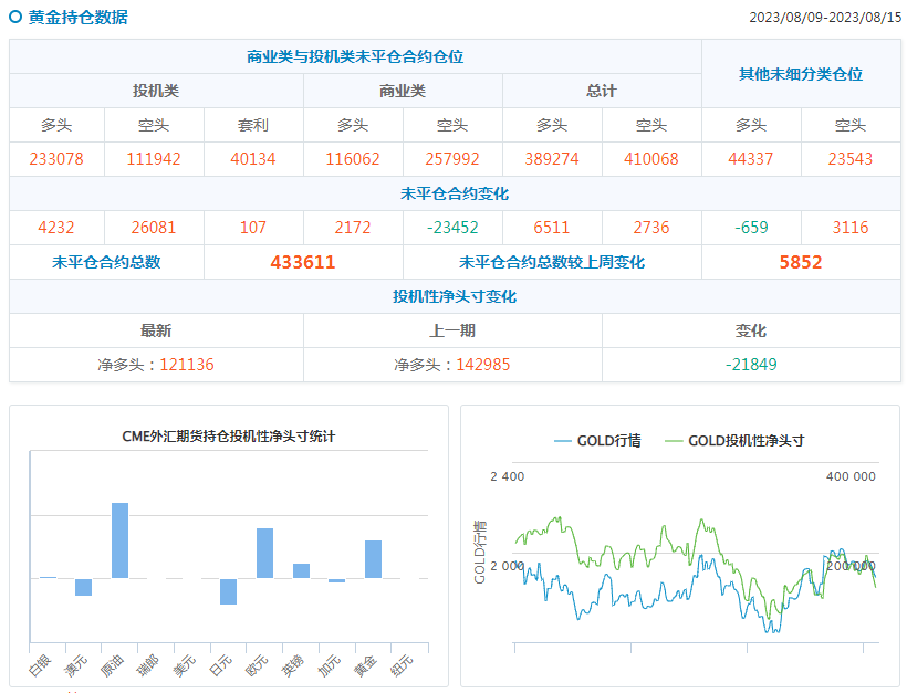 汇通财经APP讯——汇通财经据CFTC官网持仓数据:截至8月15日当周,COMEX黄金期货投机性净多头头寸减少29042手至46540手;WTI原油期货投机性净多头头寸减少28752手至149939手。