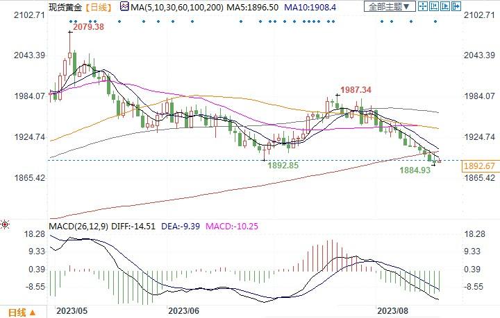 现货黄金报1892.67美元/盎司