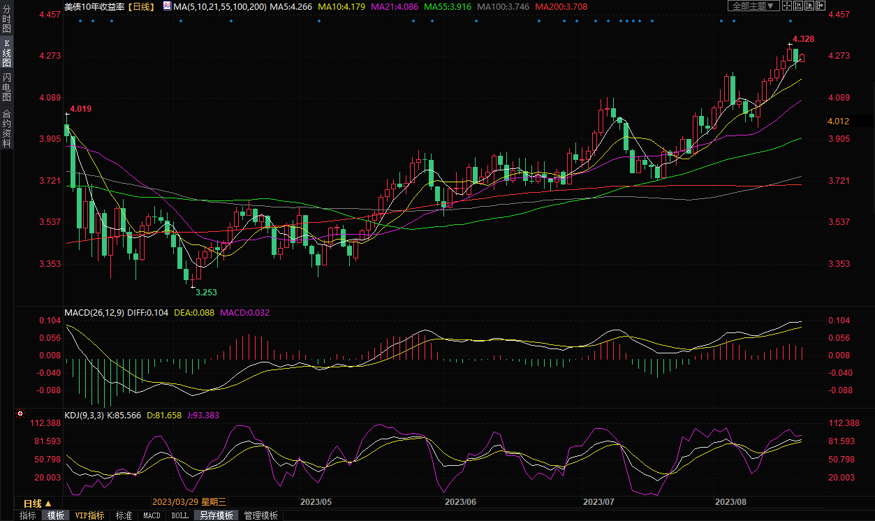 美债国债收益率上周五从10个月高位回落,但仍处于较高位置
