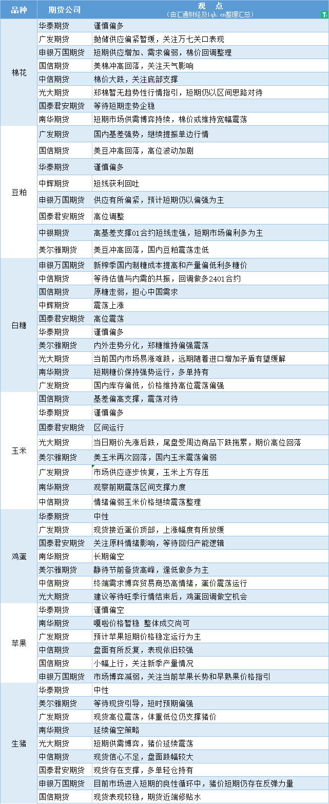 期货公司观点汇总一张图:8月22日农产品(棉花、豆粕、白糖、玉米、鸡蛋、生猪等)