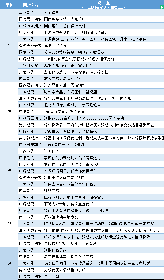 标题:期货公司观点汇总一张图:8月22日有色系(铜、锌、铝、镍、锡等)
