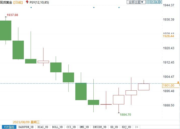 现货黄金报1900.75美元/盎司