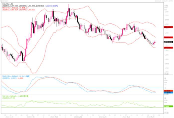 技术层面上,日线图上连续两个交易日录得小幅阳线,当前金价企稳于5、10日线移动平均线上方,但仍受压于20、60中短期均线下方,维持着偏于下行的指引参考。四小时图则显示,短期金价反弹幅度扩大并逐步企稳于四小时移动平均线之上,四小时图上的各类技术指标都自超卖区域产生了拐头向上摆迹象,显示在触及近半年低点1885附近水平之后,有抄底盘承托,从而也引发空头回补盘的出现,黄金短线有望展开进一步的反弹走势。上方初步阻力在布林带通道中轨线1915美元附近。而下方如果跌穿近期的低点1884美元支撑,则黄金将要下滑至更低的水平。