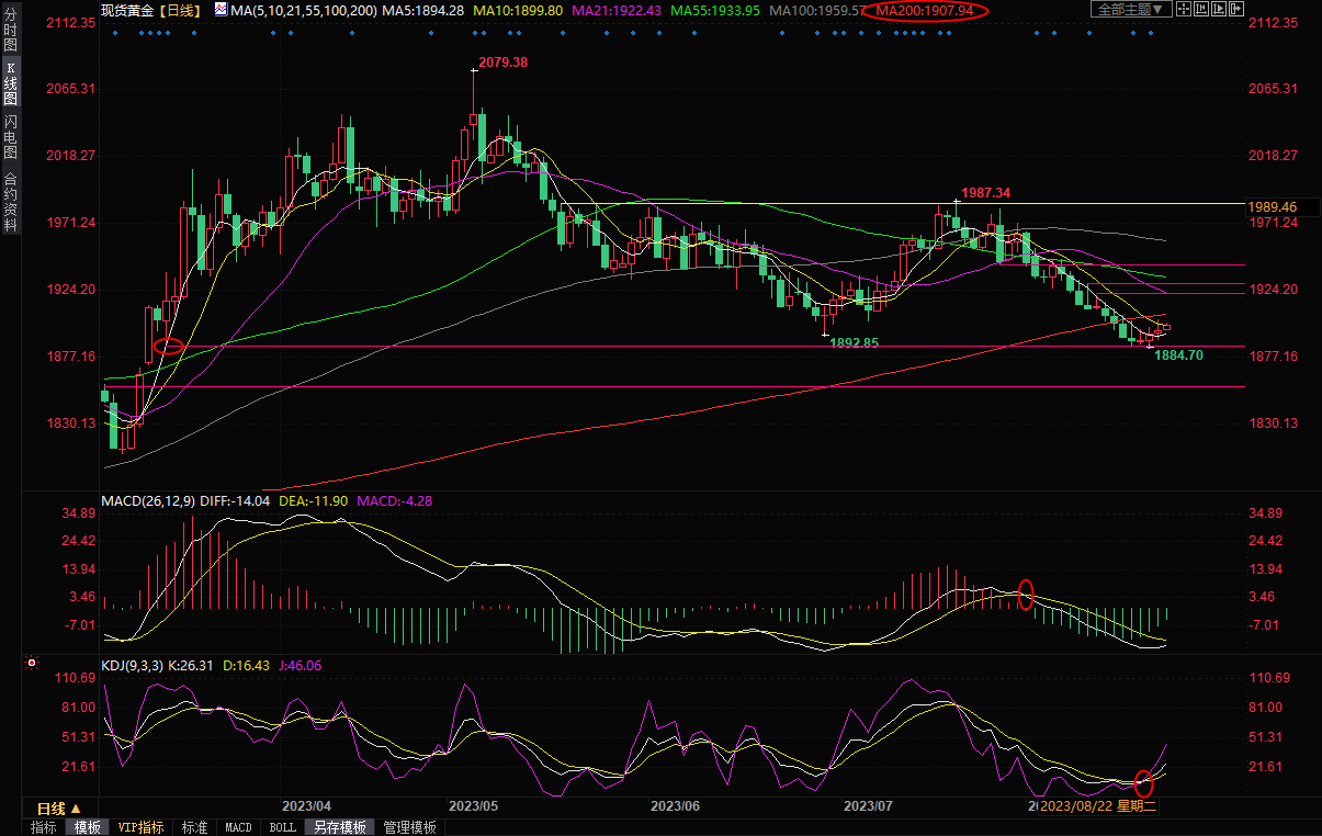 技术面来看,金价短线见底的可能性有所增加,短线存在进一步反弹机会,继续留意200日均线附近阻力,目前该阻力在1907.93附近。中线来看,金价在50、100和200日移动均线下方交投,根据技术信号进行交易的投机者将跌破这些移动均线视为看跌信号。