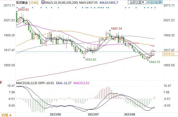 许多经济学家对近期的债券抛售不以为然,指出投资者对避险债券不感兴趣,因为美国经济仍具韧性,且劳动力市场强劲。债券收益率的上升对黄金市场来说很困难,因为金价跌破每盎司1950美元左右的关键支撑位,最近还触及两个月低点。黄金已经收复了部分失地,目前
