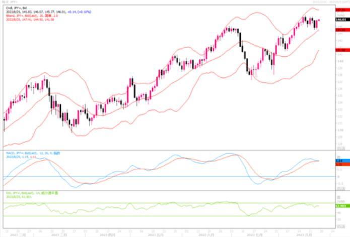 美元兑日元上涨0.68%,收盘于145.83,距离上周触及的九个月高位146.565不远。投资者等待美国联邦储备理事会(美联储/FED)主席鲍威尔周五在杰克森霍尔经济政策研讨会上的发言。以了解美联储的想法,即是否即将完成加息行动,以及计划将利率维持在高位多久。有机构分析预测,在此会议上,预计鲍威尔不会有过多的鸽派表态,控通胀仍旧会是美联储主要关注的事项,而且对于美国经济的发展前景预料不会有悲观的预期。因此,在外汇市场上,做多美元的套利交易模式应该还未到退场的时候。现在主要是交易员还在谨慎测试今年日本央行将会出面干预的警戒水平线在哪。从周线级别图上看,若144-145区域成为阶段的支撑所在,那么进一步上升的话,极有可能向150甚至更高水平前行。日内须继续留意杰克逊霍尔会议在外汇市场上的影响。