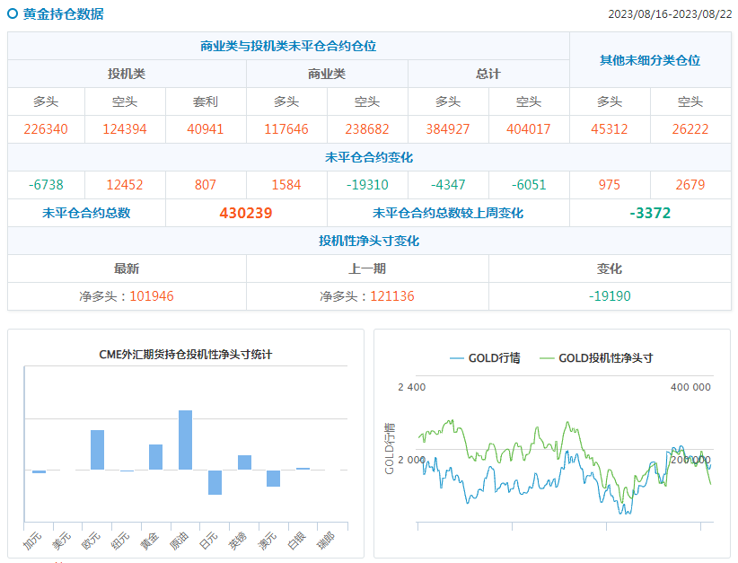 汇通财经APP讯——汇通财经据CFTC官网持仓数据:截至8月22日当周,COMEX黄金期货投机性净多头头寸减少20845手至25695手,WTI原油期货投机性净多头头寸减少16102手至133834手。