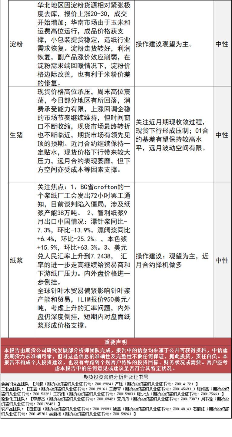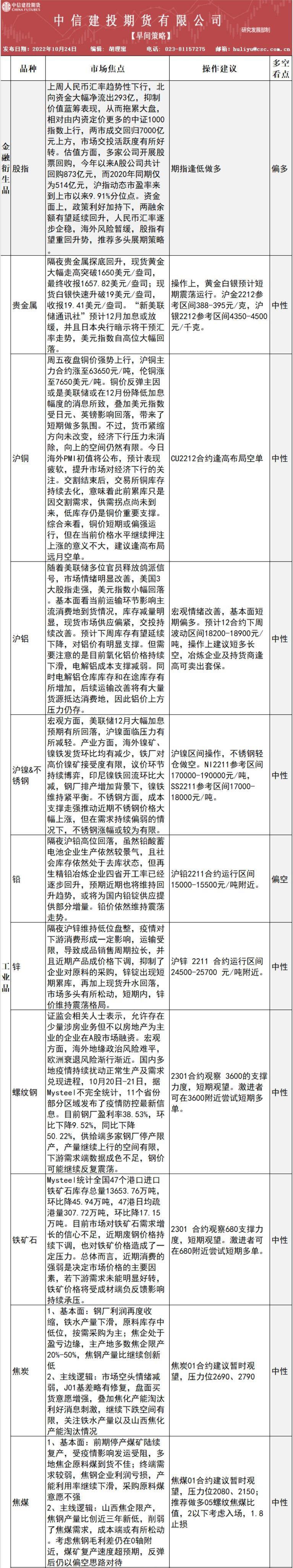 标题:中信建投期货10月24日早间策略