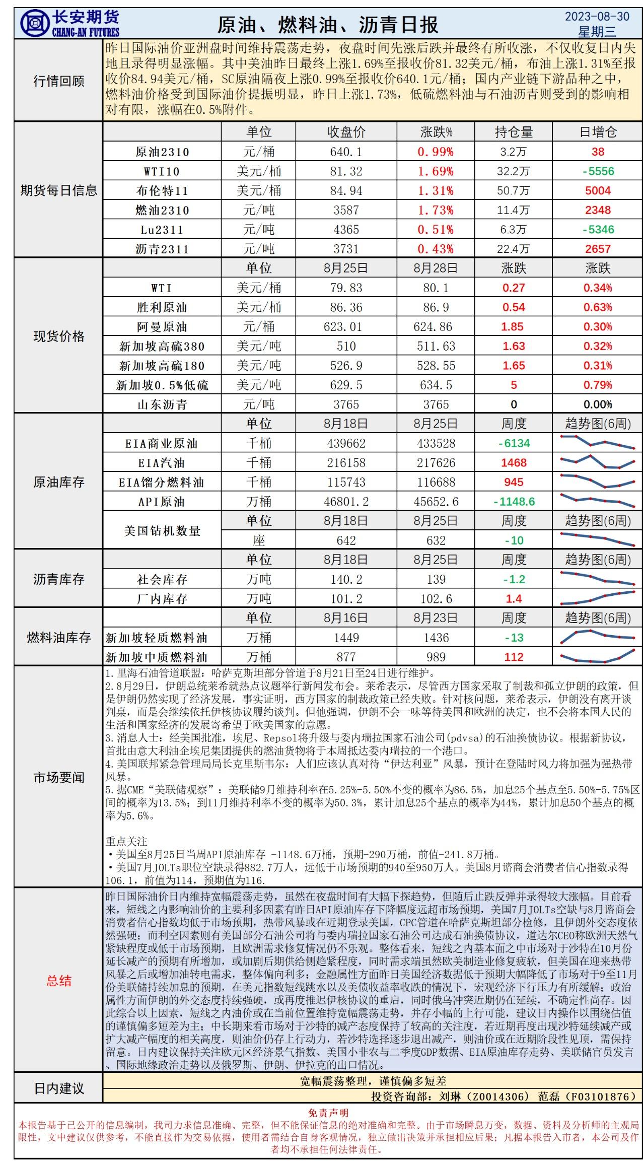 标题:长安期货8月30日原油日报:加息预期降低美元指数跳水,油价反弹之际关注美国小非农数据