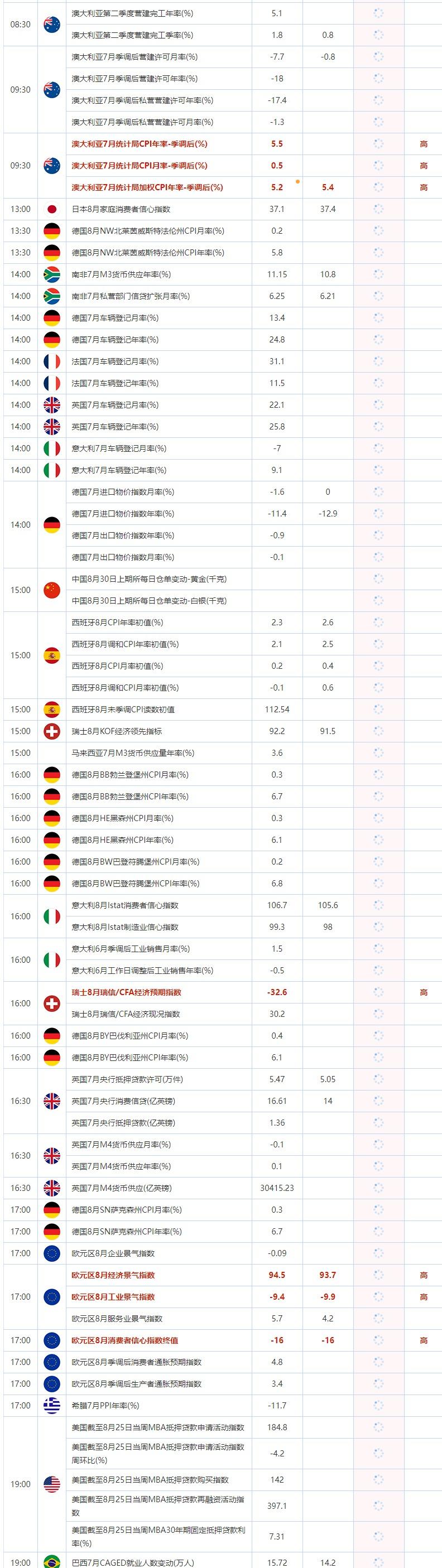 标题:8月30日重点数据和大事件前瞻