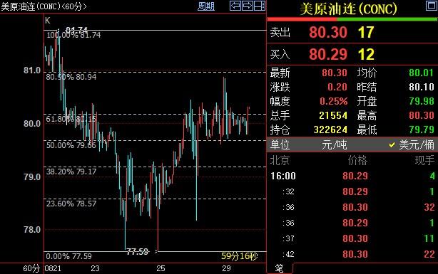 北京时间16:09,NYMEX原油期货上涨0.35%至80.38美元/桶;ICE