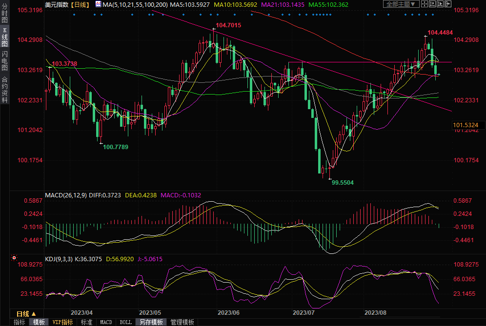 美元指数方面,周三美元指数下跌0.29%,收报103.16,早些时候一度跌至102.92。美元指数上周五曾触及104.44,为6月1日以来最高。周四亚市,