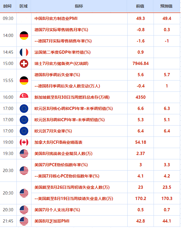 标题:8月31日财经早餐:更多疲软数据带动美联储暂停加息押注,美元三连跌,金价升至四周高位