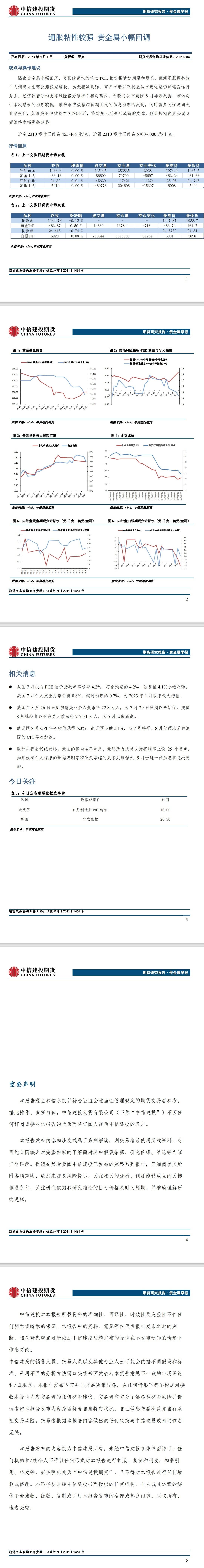 标题:中信建投期货9月1日贵金属日报:通胀粘性较强 贵金属小幅回调