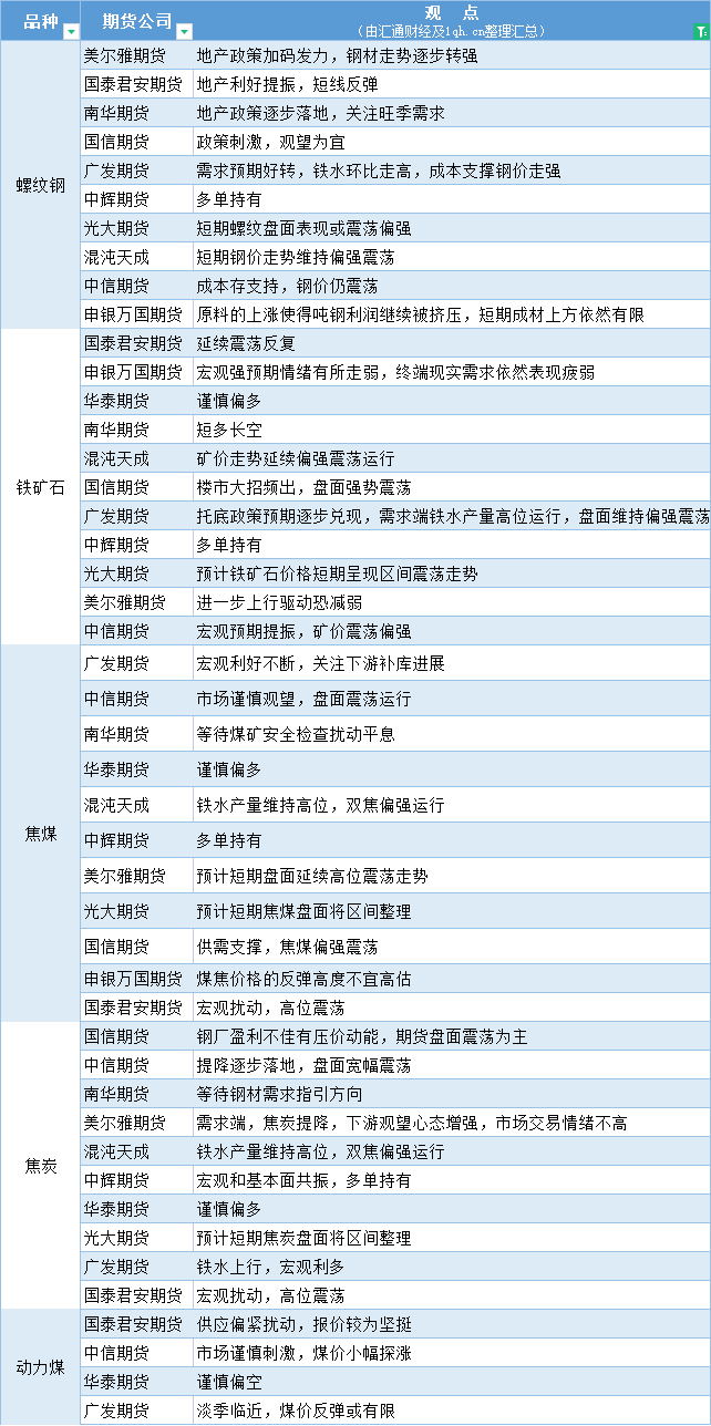 标题:期货公司观点汇总一张图:9月1日黑色系(螺纹钢、焦煤、焦炭、铁矿石、动力煤等)