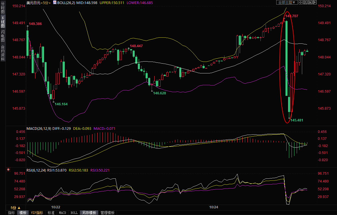美元兑日元5分钟图)