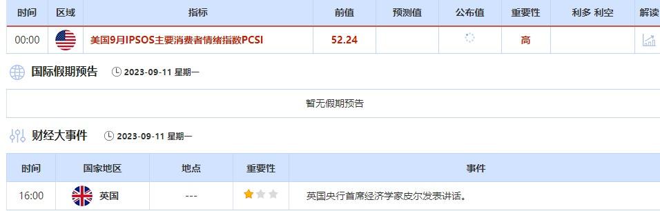 ①9月11日(周一)关键字:英国央行首席经济学家皮尔