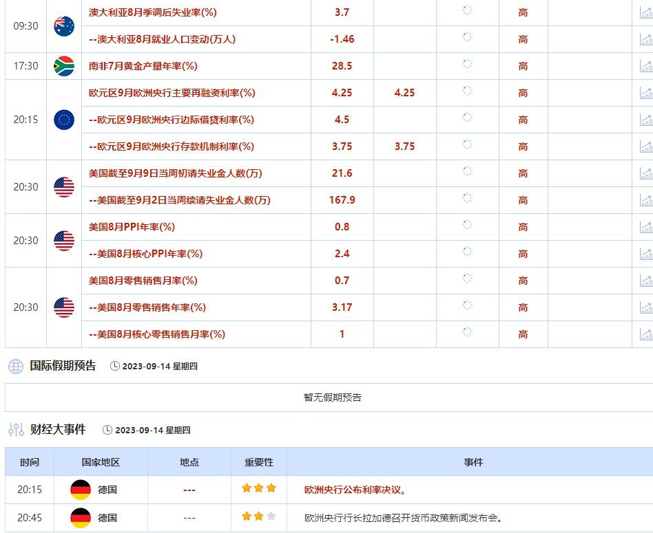 ④9月14日(周四)关键字:欧洲央行利率决议,美国截至9月9日当周初请失业金人数
