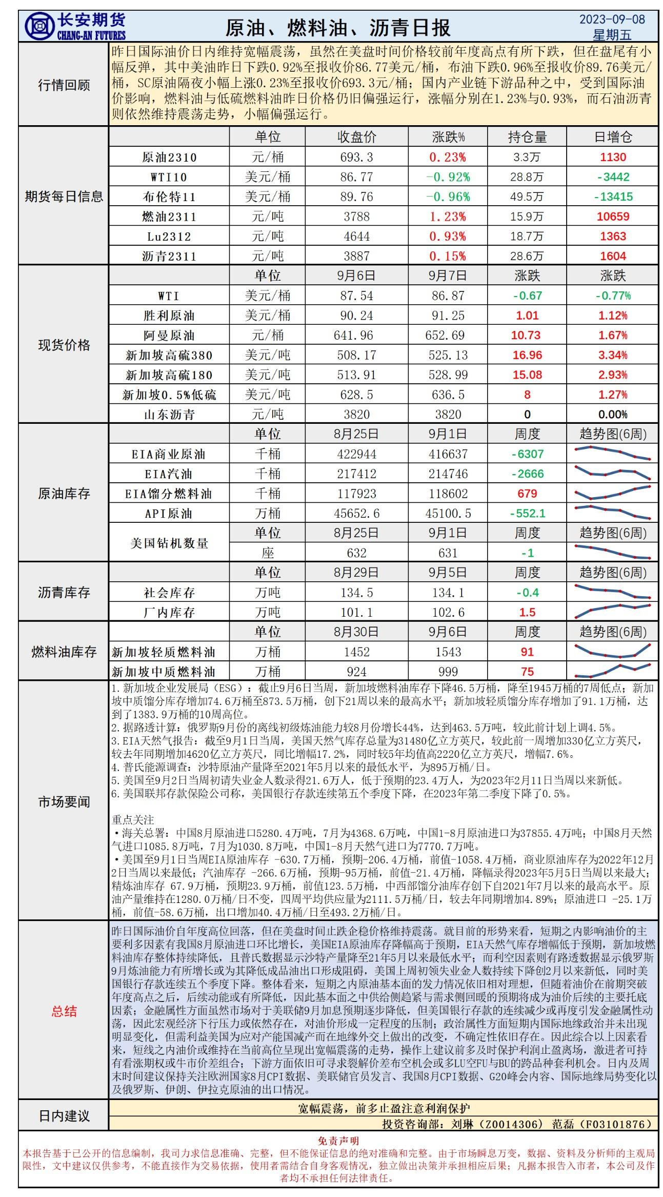 标题:长安期货9月8日原油早评:供需紧致托底油价,油价小幅回落或维持震荡
