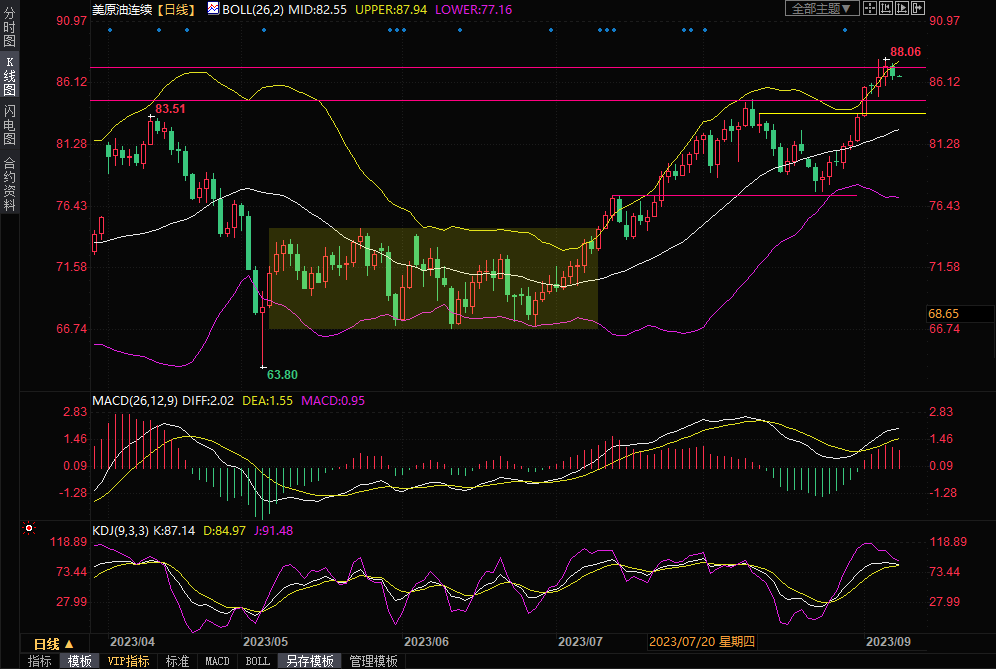 WTI 10月原油期货收跌0.67美元,跌幅0.77%,报86.87美元/桶。