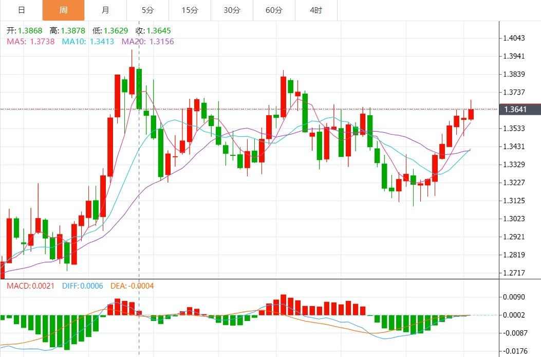 美元兑加元回落在50均线下方1.3600,它将前往1.3500 ~1.3520的支撑位。